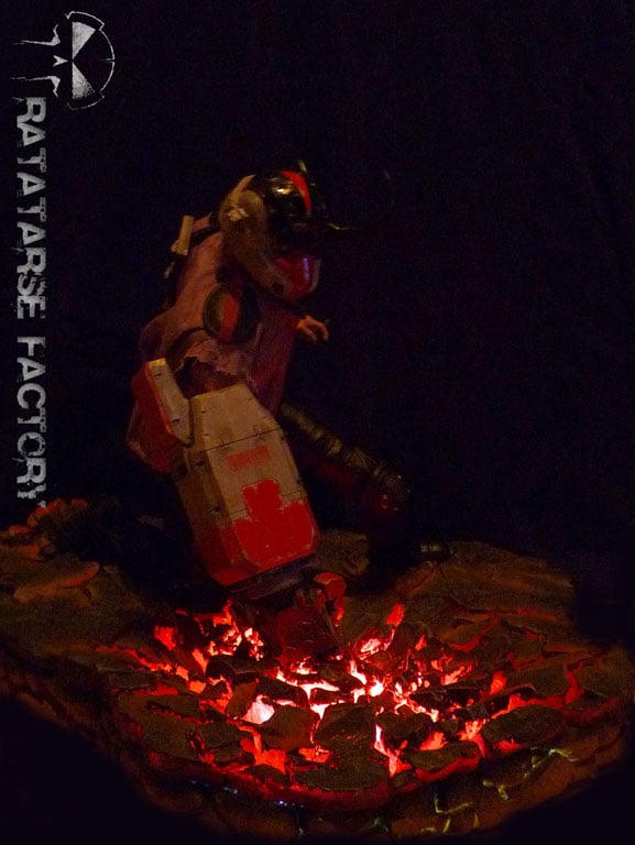 And, with the huge "LED Shattered base", made for posing an Avengers Iron Man MkVII figure, Hellboy R seems to activate a volcano in the tremendous night, when fighting against any evil creature who wants to enslave humanity :
