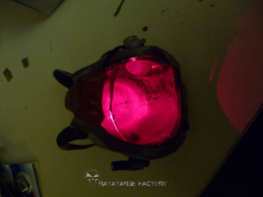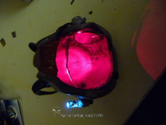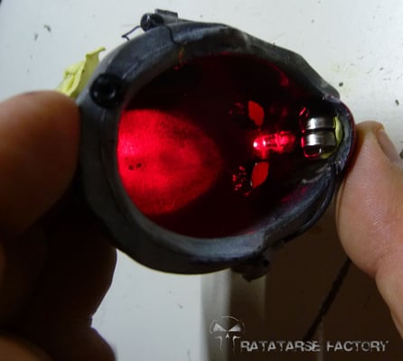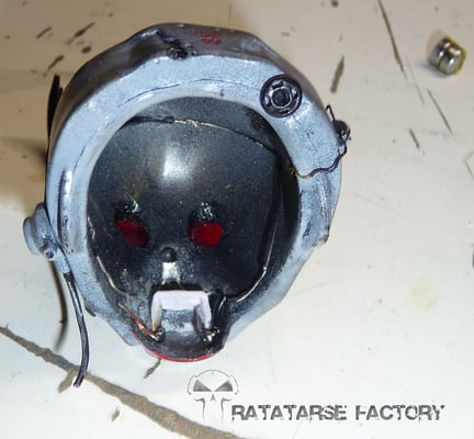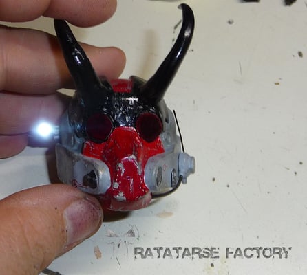 I made a double light-up circuit that fits in the helmet, to light-up a red led inside and a torch outside to match the design...