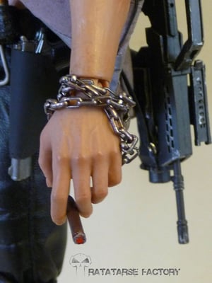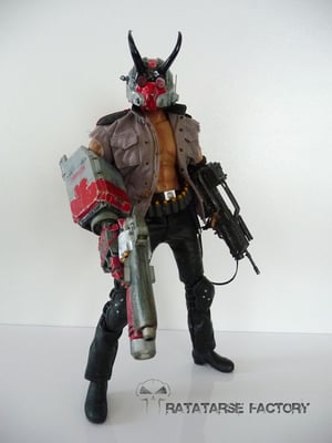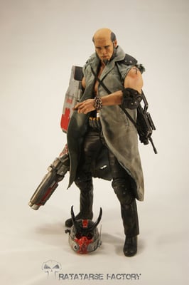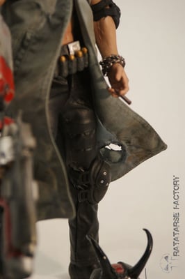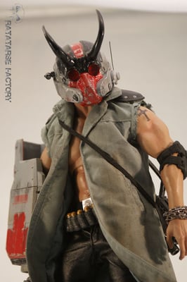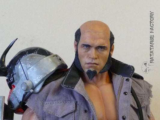 I used the headsculpt of a dismembered T-800 T1 Hot Toys, scalped , and recreated hair in a japanese look like Hellboy has.