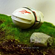 I put all those parts, after a complete repaint and weathering, featuring melted metal in low fusion at the cuts, onto the grass of the diorama base, along with some rocks and customized clone helmet and shoulder armor.
