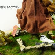 So I used tiny transparent rubber band I had from deboxing Transformers Deluxe figures, to attach the two feets and the remaining hand on the handlebar, so the droid can't fall.