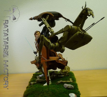 So this is Master Obi-Wan Kenobi, using the Force Push to unseat the droid on the S.T.A.P. :