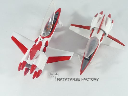 Printed on a Formlabs Form2, this 1/60 Fan Racer from Macross (TV series) is larger than old Yamato model kit in the same scale I built 3 times differently.