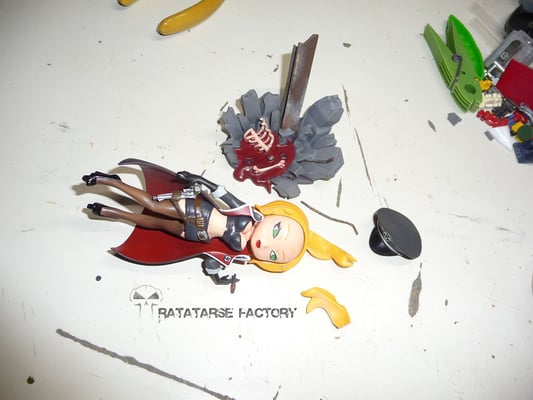 So I repaired the whole stuff and repainted the miss, in a way more "cartoon" wich make it better, I think, with her appearance on this 4inch statue.
